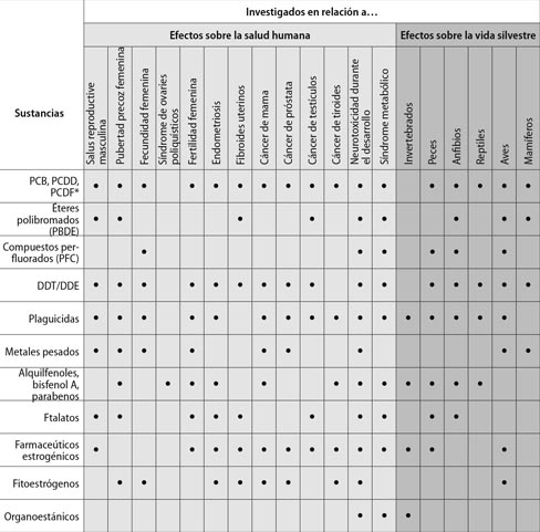 Esto es, los contaminantes hormonales están relacionados con las principales enfermedades que afectan a las sociedades industrializadas y a los animales salvajes en la actualidad.