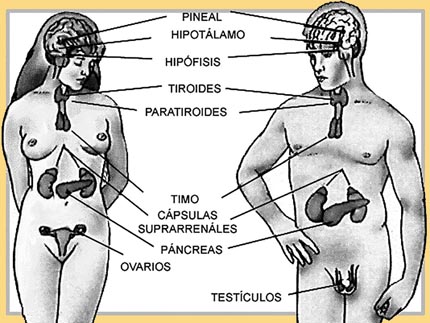 Como vemos, regula funciones vitales del organismo, incluyendo el desarrollo embrionario. Está formado por glándulas (que secretan las hormonas), hormonas (sustancias químicas que actúan como mensajeros) y receptores hormonales (que se activan con las hormonas). Las hormonas viajan en el flujo sanguíneo hasta células de los diferentes órganos que contienen proteínas especializadas llamadas receptoras, que reconoce esa hormona y se une a ella. La hormona cambia el estado del receptor de “inactivo” a “activo”, lo que posibilita que se una al ADN celular y active o reprima la expresión de los genes cercanos.Cada glándula endocrina secreta solo una cantidad muy determinada y muy pequeña de una hormona, en un momento concreto, circulando por la sangre cantidades muy pequeñas, ya que las hormonas son muy eficaces y producen su efecto a concentraciones muy bajas (picogramos o nanogramos /ml de sangre). Esto es a concentraciones de 0,00000000001 0,00000001 gr/gr, o ppb. La cantidad de las distintas hormonas presente en la sangre es diferente en cada persona y varía con la edad, sexo, momento del ciclo reproductor o estado de salud en que se encuentre. Cada persona presenta su propio estado de equilibrio hormonal.