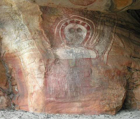 En las pinturas de Kimberley aparecen, entre otras, figuras de seres calzados con sandalias, algo absurdo si tenemos en cuenta que los aborígenes siempre han ido descalzos. Algunas de las figuras tienen 3 ó 7 dedos, tanto en las manos como en los pies. A pesar de que tanto la técnica y el uso de pigmentos de color azul que los aborígenes no utilizan hacen pensar que ellos no hicieron estos dibujos, los arqueólogos insisten en que sí fueron realizados por los nativos, y que representan al Dios de la lluvia.