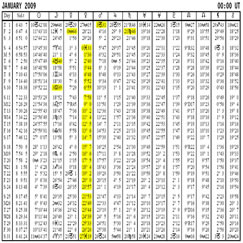 El siguiente paso es examinar una efeméride e identificar ciertos períodos en el futuro cuando uno o más planetas están dignificados de alguna manera. Lo que deberías estar buscando principalmente es planetas que estén en su propio signo, exaltación o en una recepción mutua con otro planeta por signo. Estos planetas serán más fuertes y, por lo general, serán más capaces de afectar sus propias significaciones de una manera que sea beneficiosa o constructiva con respecto a su elección.