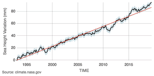 Con las mediciones por satélite que se realizan desde 1993 pasa lo mismo. A pesar de que nuestras emisiones de CO2 se han incrementado en un 66% en estos 25 años, no se observa aceleración en la subida del nivel del mar. De hecho los mismos científicos encargados de medirlo lo dicen: