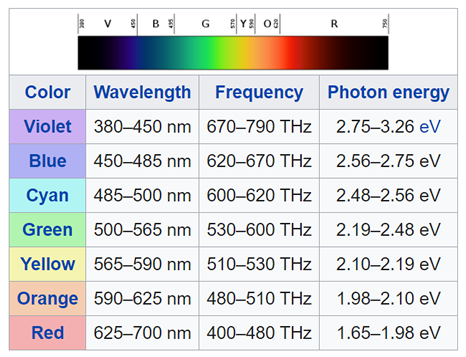 Fuente: https://en.wikipedia.org/wiki/Visible_spectrum