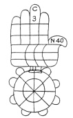 en forma de mano que se utiliza tradicionalmente en el Mundo Árabe