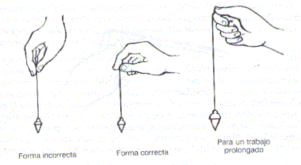 En esa forma se pude apuntar el péndulo al cuadrante que se desee usar, para obtener la lectura adecuada, localicé el cuadrante para que el péndulo quede en una posición adecuada y la visión permita definir correctamente donde apunta la punta del instrumento.